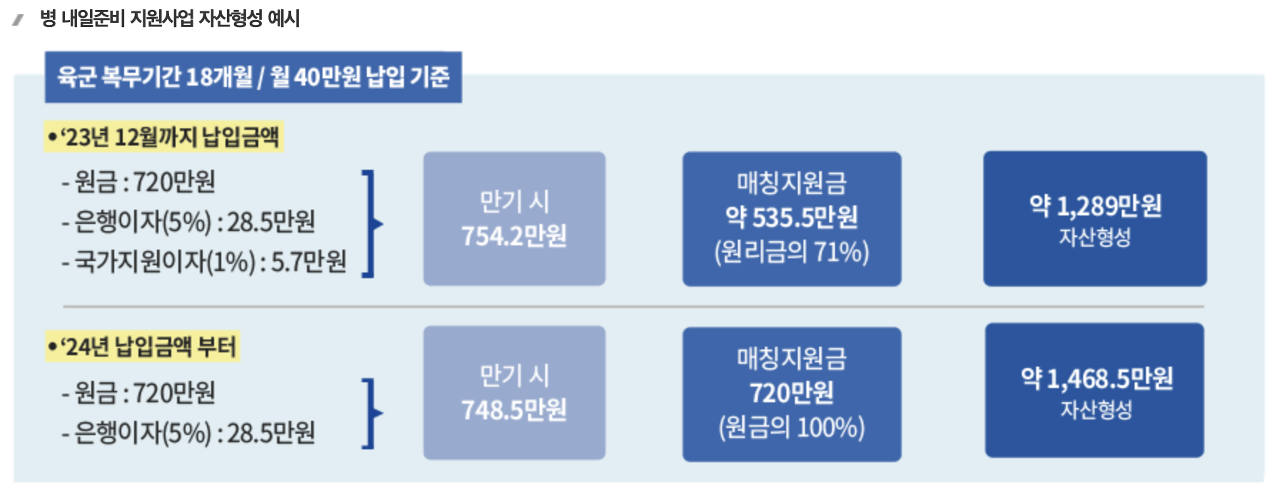 2025년부터 장병내일준비적금의 납입 한도가 기존 월 40만 원에서 월 55만 원으로 상향되었습니다.